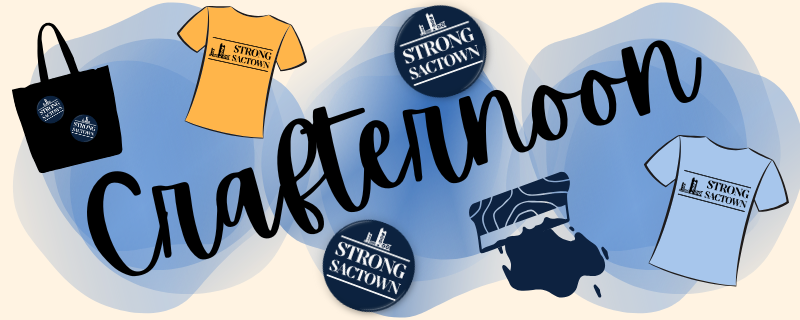 Crafternoon is a regular event for Strong SacTown members to work on craft or mending projects and get better at fixing things together! In October, we’re getting support from Community Shop Class to test out a screen printing setup. Attend if you are interested in getting early access to Strong SacTown merch or to work on your own mending project!