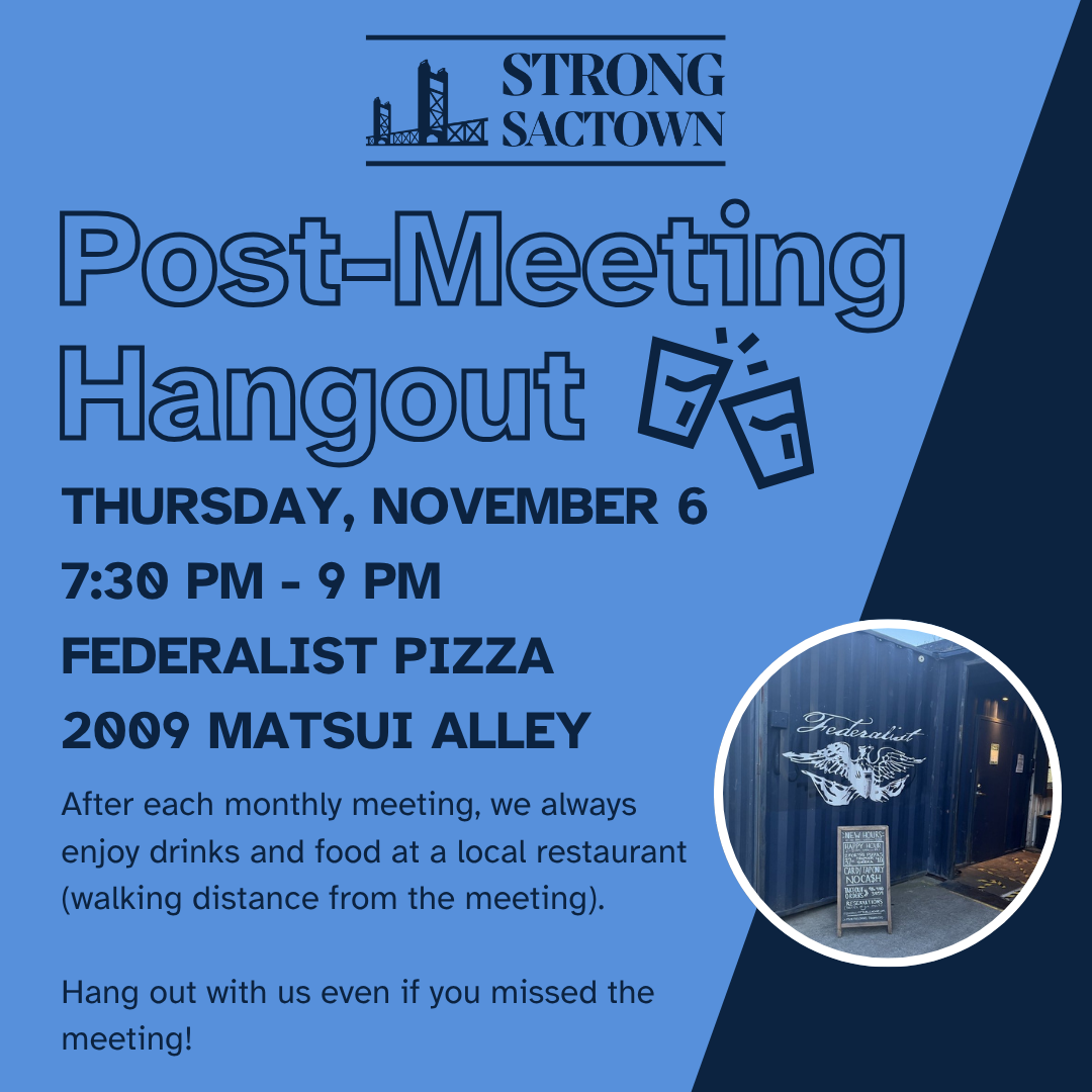 Strong SacTown Monthly Meetings are open to the public. Anyone can join!